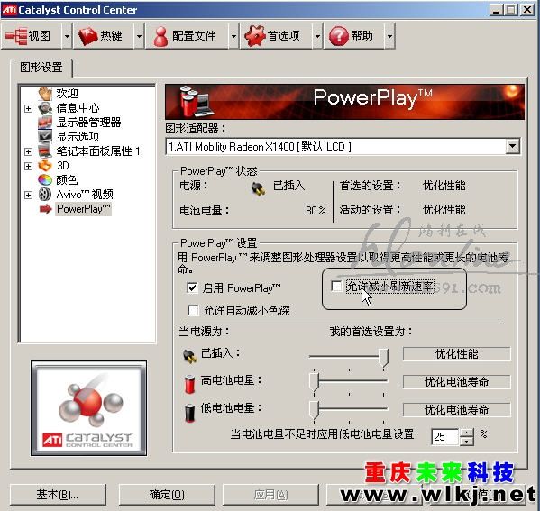 右击桌面/打开catalyst control center/powerplay/将电源设置都改为优化性能/  就不闪了