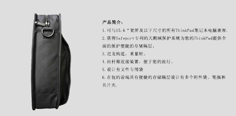 1.可与15.6"宽屏及以下尺寸的所有 ThinkPad笔记本电脑兼容