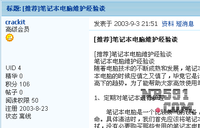 作者: crackit    时间: 2003-9-3 21:51     标题: [推荐]笔记本电脑维护经验谈
