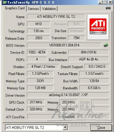 T2显卡是从9600改过来的,但是除了显存增加64MB外,其他好像参数有所降低,包括GPU主频,显卡频率,