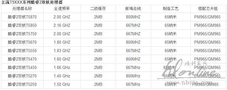主流T5XXX系列酷睿2双核处理器