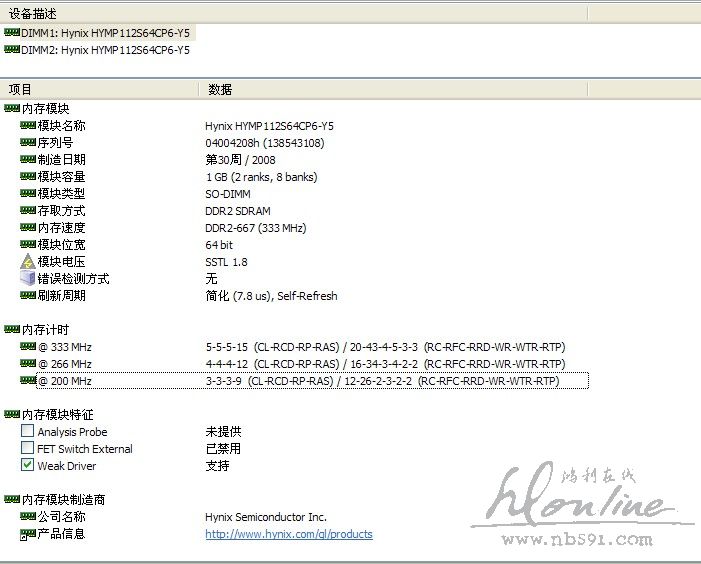 我把华硕X59拆开了,看了一下,里面的是HY的两条一G的内存,不知道能不能装到T60上去。HY的条子好像不怎么样的吧。