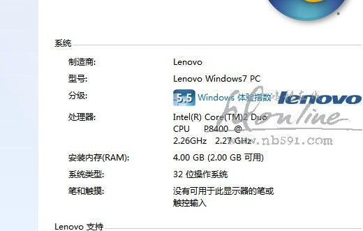 识别问题:在XP模式下能识别 并使用2.99个G ,但是在W7系统下 就这样子了